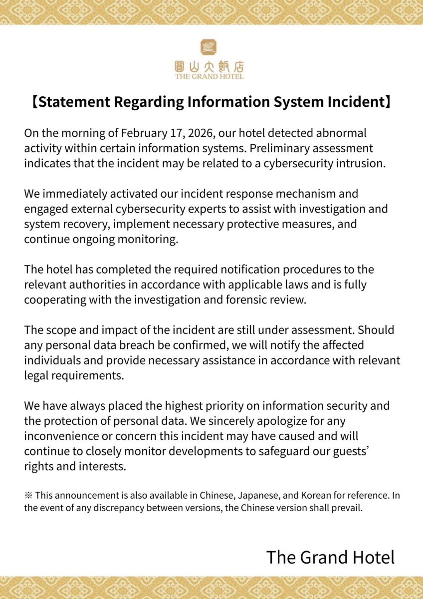 Statement Regarding Information System Incident