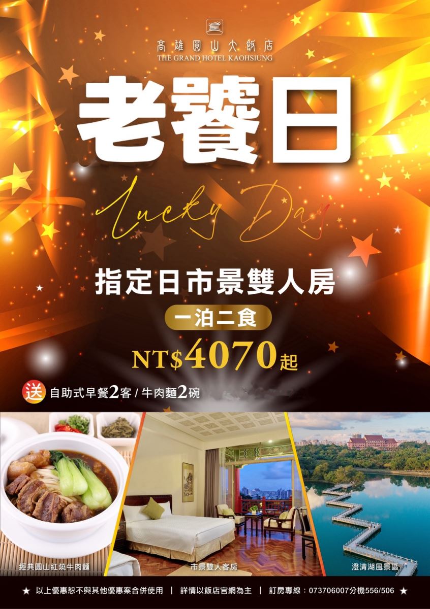 - 以上優惠內容高雄圓山大飯店保留修改、變更、取消之權利