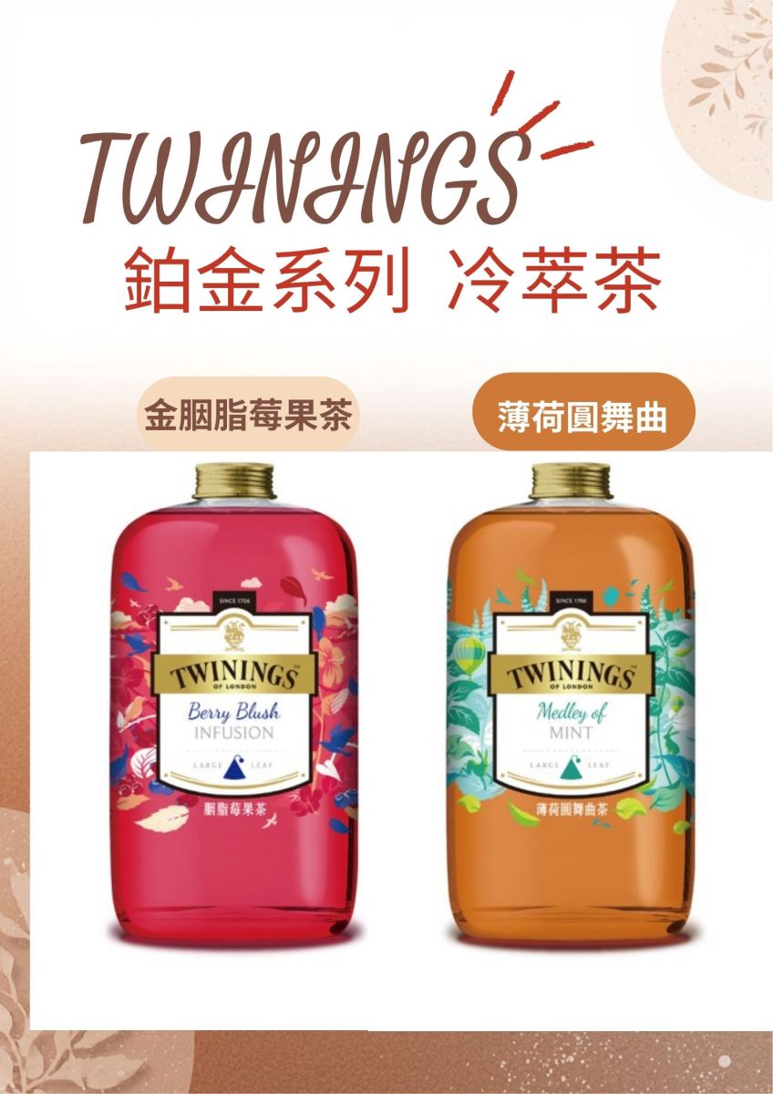2. 贈TWININGS唐寧鉑金冷萃茶2瓶(口味以現場為主)