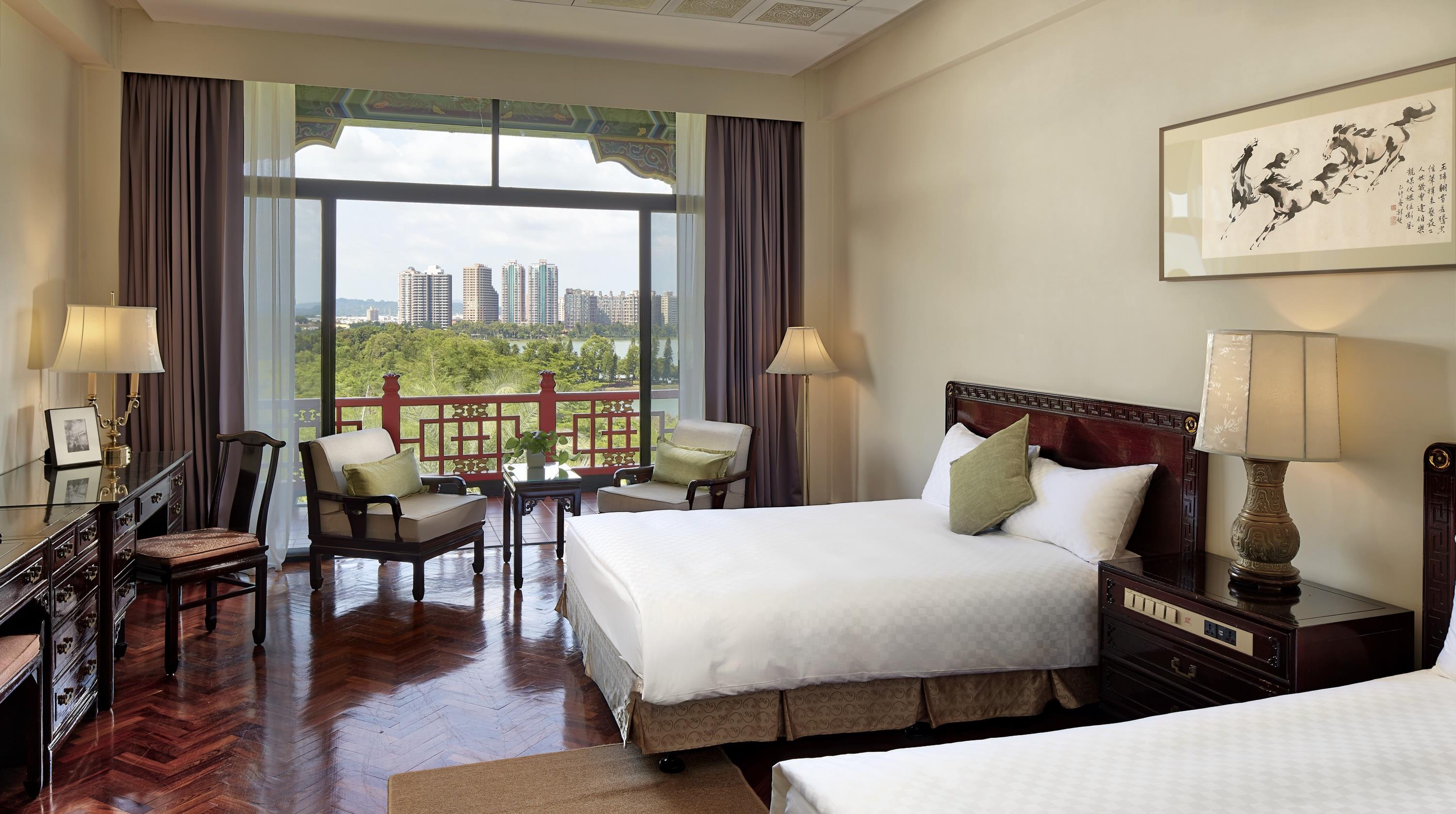 舒適寬敞的空間,古典婉約的擺設,提供住宿貴賓,身心輕鬆自在的休憩空間。面澄清湖客房的景觀陽臺,澄清湖美景, 盡收眼底。